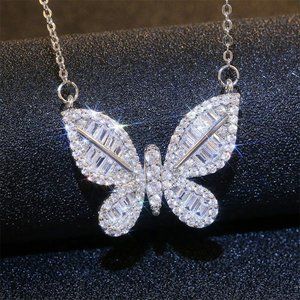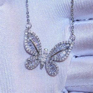 Whisical and gorgeous, this butterfly is 925 Sterling Silver covered with real cubic zircon crystals & lots of baguette crystals on the wings