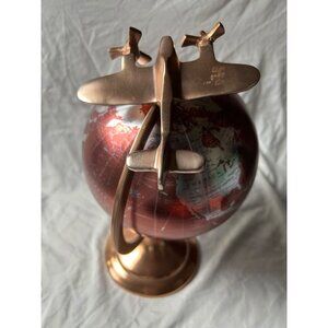 • Material: Metal airplane & stand with brushed copper finish; printed world map globe