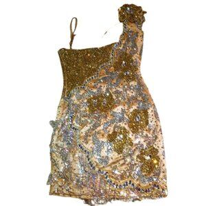 Luxury Couture Swarovski Crystals Runway Fringes Flowers Cocktail Glamour Dress