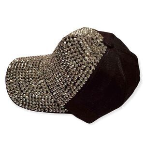 Luxury Crystal Diamond Rhinestone Hat. Silver rhinestones lay on the front of the hat.
