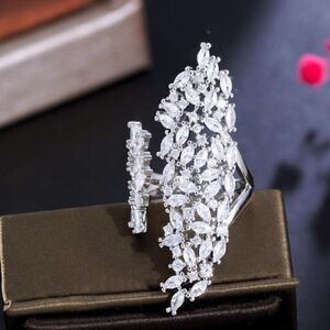 Luxury Cubic Zirconia Cuff Statement Luxury Adjustable Glamorous long Ring