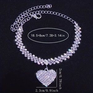Luxury Design Glitter Rhinestone Heart Love Anklet & Bracelet Set Women's Party
