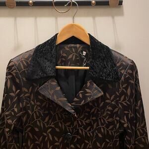 Luxury Designer Black Satin Coat, Blazer | Velvet Trim Pockets Lined, 10/12 M/L