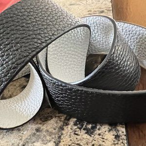 This exquisite accessory, in black and white pebbled soft leather, transcends fashion eras, making it a versatile addition to your wardrobe. Whether you're dressing up for a formal occasion or adding flair to casual attire, this belt effortlessly complements any outfit.