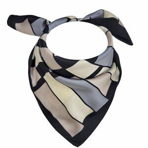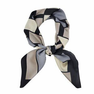 ⭐Luxury Elegant Bandana Silky Satin Square Scarf Gray Beige Geometric Neutral