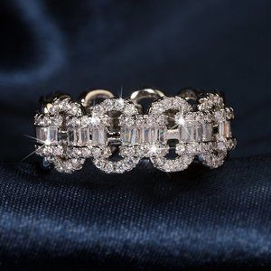 💝 "Luxury Eternity Wedding 925 Silver Plated CZ Dainty Ring for Women,UNVN12261