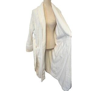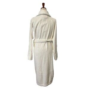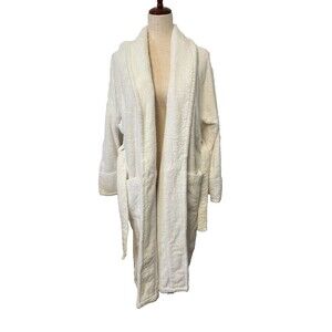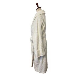Beautiful thick & plush terry clothe robe by FRETTE. Resort high-quality, made in Turkey. Bright white with tie waist and hop pockets. Great for house coat, bath, spa, hot tub, or makes a great gift! Unisex size S/M.