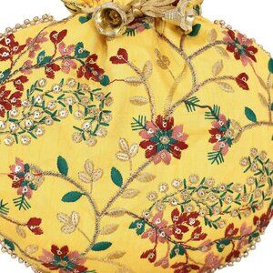 Luxury Flower Yellow Potli Bag - Embroidered Silk Clutch with Spacious Interior