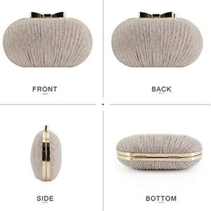 #LuxuryClutch #EveningBag #GlitterPurse #PartyAccessory #WeddingBag #ElegantStyle #FashionBag #ShellDesign #GoldBow #FormalWear