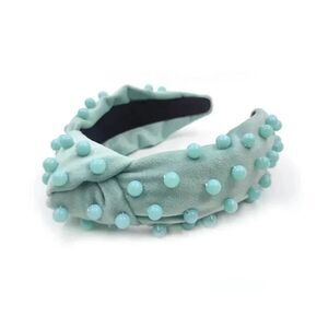 Luxury Knotted Beaded Headband in Baby Blue