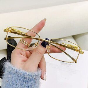Luxury Leopard Clear Lens Gold Frame Hip Hop Retro Men's Rectangular Glasses