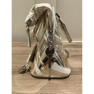 The MAISON MARGIELA 5AC Classique Mini leather satchel is a stylish and versatile accessory for women. This satchel/top handle bag is crafted from a unique white leather accented with distinctive silver metallic splotches — a signature statement piece from the acclaimed fashion house which adds a trendy touch to any outfit. The Maison Margiela brand ensures high-quality craftsmanship and attention to detail, making this bag a fashionable and practical choice for every woman on the go.