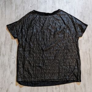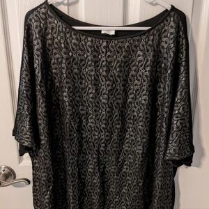 Luxury Marina Rinaldi Silver Metallic Embroidered Black Lined Tunic Tee Size XL