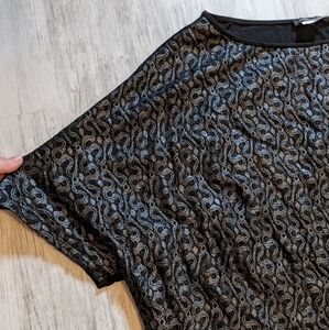 Designer, Luxury, Tunic, Luxurious, Black, Jersey, Knit, Knitwear, Metallic, Embroidery, Embroidered, Streetwear, Scoop Neck, Short Sleeve, Size XL, Size Extra Large, Women, Woman, Women's, Marina Rinaldi, Swirly, Swirls, Formal, Semi-Formal, Dressy, Date Night, Evening, Viscose, Polyester, Elastane, Metal, 80s, Halloween, Beautiful, Unique, Rare, Vintage, Tee Shirt, T-Shirt, Nylon, Top, Shirt, Blouse, Mini Dress, Long Top, Oversized, Rave, Sheer, Festival, Lined, Festival Wear, Rare Wear, Made in Romania, Comfy, Comfortable, Knit, Jersey Knit, Silver