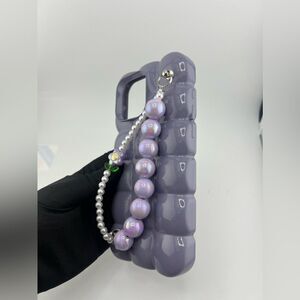 Elevate your phone’s style with this glossy lilac bubble phone case. Featuring a textured, eye-catching bubble design and a whimsical beaded handle with pearl and charm accents, this case combines functionality with playful elegance.