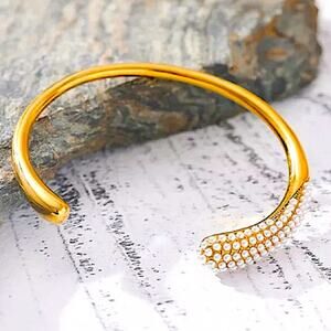 Irregular gold plated bangle cuff bracelet. Adjustable in size. Made with Premium Stainless Steel and plated with the finest of 18K Gold. Waterproof • Anti Fade • Anti Tarnish • Hypoallergenic