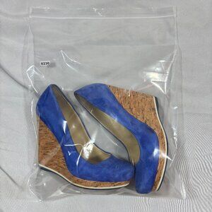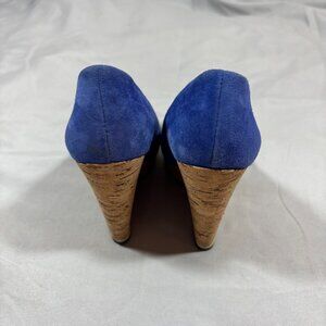 Luxury Rebel Blue Tan Suede Cork Selma Wedges Slip-On Platform Heels 6.5