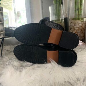 Black genuine leather luxury rebel boots with stud and rhinestone detail on the heel.