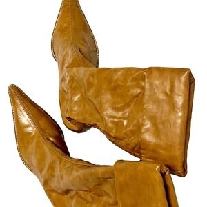 Cool convertible soft leather boot with a pointed toe and hi-low top, stacked wood heel.New without box.