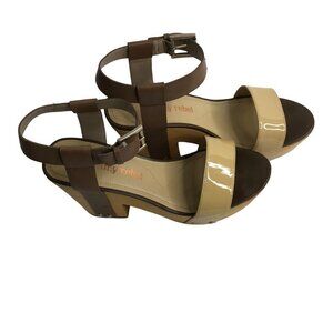 Luxury Rebel Women's Fern Wood Platfrom Ankle Strap sz 38.5M US 8M