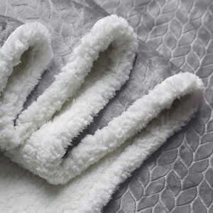 Double-Layer Reversible Luxury Sherpa Blanket, Light Grey Throw Size Extra Warm Super Cozy Plush for Couch/Bed Microfiber 580GSM (50 x 60 inches)
