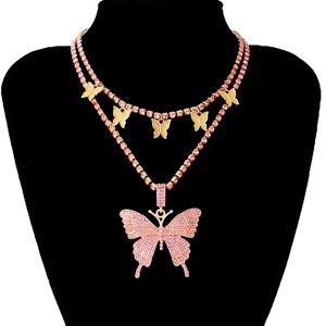 Luxury Rhinestone Cuban Butterfly 🦋 Set Two Tone Necklace