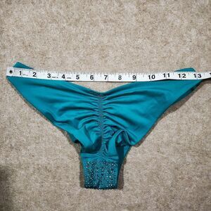 Luxury Rhinestone Teal Scrunch Butt Pull On Bikini Bottom #8