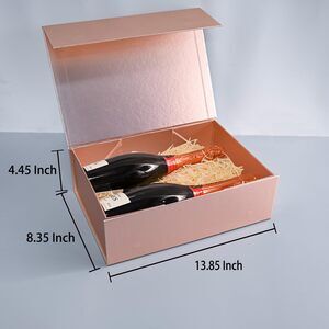 Luxury Rose Gold Magnetic Gift Box 13.85x8.35x4.45” with Ribbon, Card & Filler