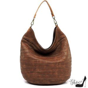 A gorgeous eye-catching hobo with rich shiplap style stripe texture - beautifully distressed and ready for your outfit!