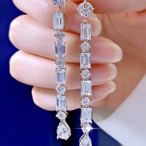 Luxury Silver Geometric Cubic Zirconia Dangle Women's Earrings
