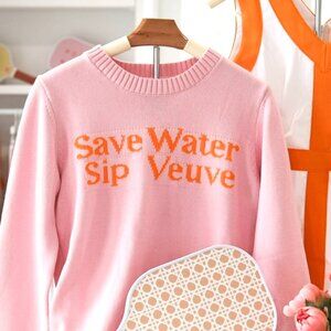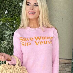 Luxury Sweater, 100 % Cotton, Save Water, Sip Veuve, Size Small, New With Tags