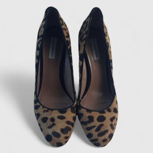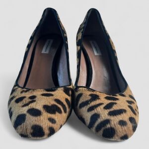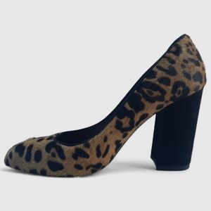 Luxury TABITHA SIMMONS Calf Hair Leopard Block Heel Pumps Italy Brown Tab 7.5