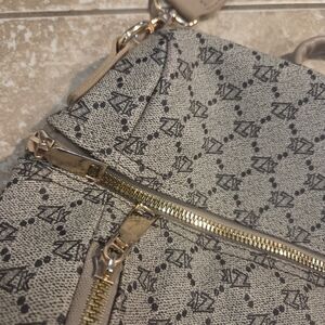 Stylish and versatile designer backpack in beige with a classic pattern. Perfect for everyday use.