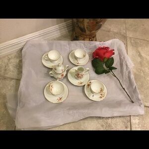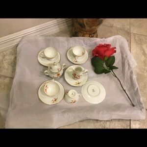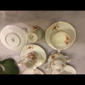 Comes with Creamer and sugar with lid footed cup and saucer.