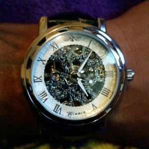 Silver and white with leather band. Beautiful and elegant. Make an offer! P_p accepted.