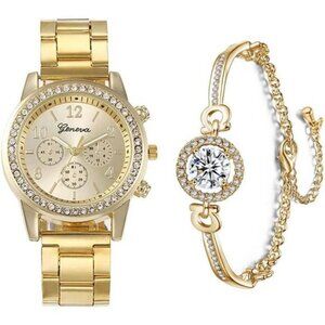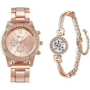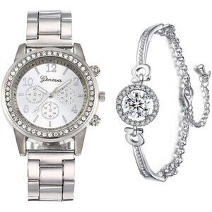 Luxury Women's Watch and Bracelet Sets – Elegant Timepiece with Crystal Accent
