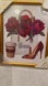 Gucci bag adorned with vibrant red flowers. Features a leopard print heel and branded coffee cup. Includes a bold red lipstick.