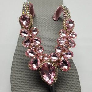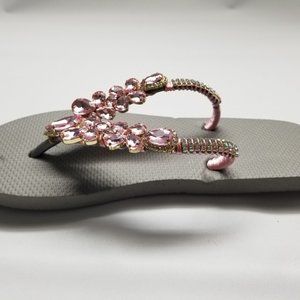 Luxury flip flops with crystals and rhinestones. Grey and pink