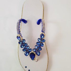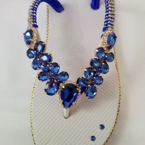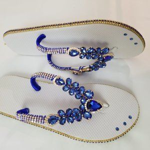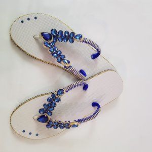 Luxury flip flops with crystals and rhinestones..White and Blue