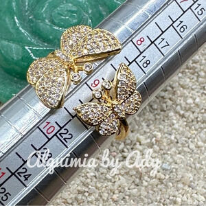 Luxury gold diamond pave big chunky jewel Tone gem ring/ cuff butterfly
