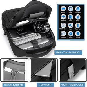 This business backpack for men with external USB charging port and built-in charging cable can easily and conveniently charge your smart phone, tablet and other electronic devices while walking.The padded bottom and laptop sleeve in laptop backpack provide exceptional protection for your laptop, cushion your laptop from bumps and shocks.