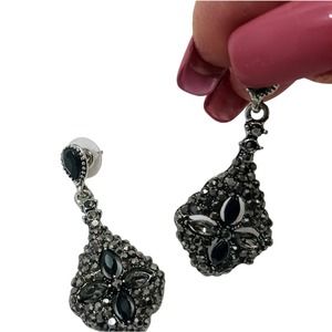 Luxury style Fleur Black Diamonds Simulated Chandelier Pierced Dangle Earrings