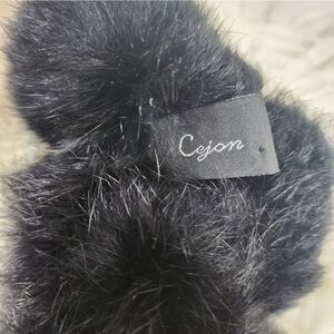 Lovely fur scarf measures 36" in length x 4" width. Fur pom poms sewn together using sturdy black cord. There are 3 rows of pom poms, ending with a ball at each end. A lovely, classic wardrobe addition. Cejon rabbit Fur scarf