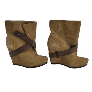 Luxury Rebel Simone Leather Hidden Heel Wedge Strappy Ankle Bootie Brown Sz 7