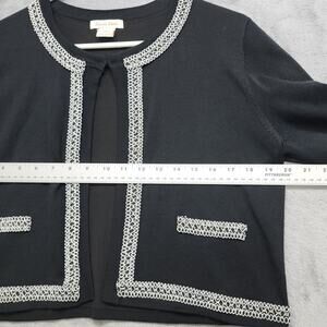 Luxxe Lane Sweater Womens L Black Silver Trim Shrug Cardigan Stretch Knit Formal Party Cocktail Office Preppy Sing Hook and Eye Closure