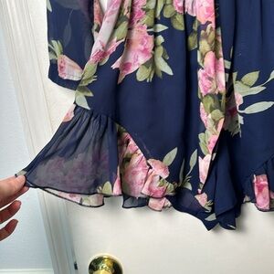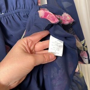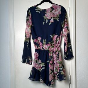 Luxxel Blue Long Sleeve Floral Dressy Romper Size Small