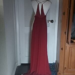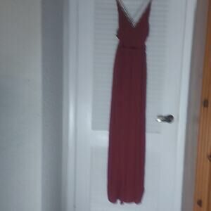 Luxxel Keyhole Front Elastic Strapped Burgundy Belted Wide Leg Slits Jumpsuit M