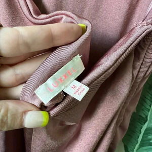 Luxxel Pink Long Sleeve Plunge Deep V Open Back Dress Size M