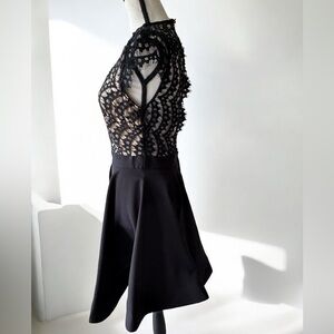 Luxxel Windsor Fit & Flare Black Lace Cocktail Open Back Size S dress