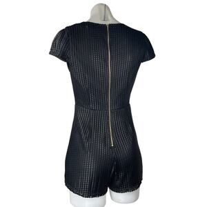 Luxxel Women's Black Short Sleeve Pleated Deep V-Neck Zip Romper Shorts Size S